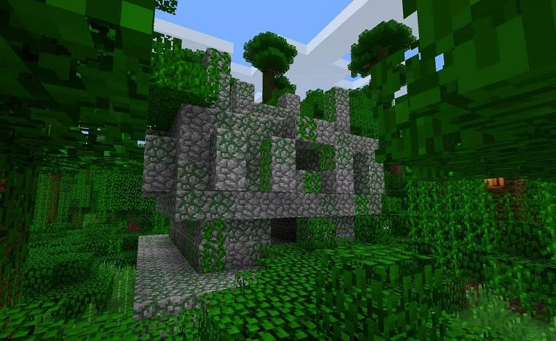 Jungle Temples are found hidden in jungles covered in a thick layer of foliage. They are made up of cobblestone and mossy cobblestone and descend below the surface. Inside there are a few traps and puzzles. One trap is a tripwire that fires arrows at you. One puzzle is that there are three levers to pull in the right combination to reveal a chest but a trick is to just mine right through to the chest!