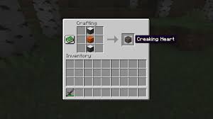 You can craft a creaking heart with two pale oak logs and a block of resin as shown in the picture below: